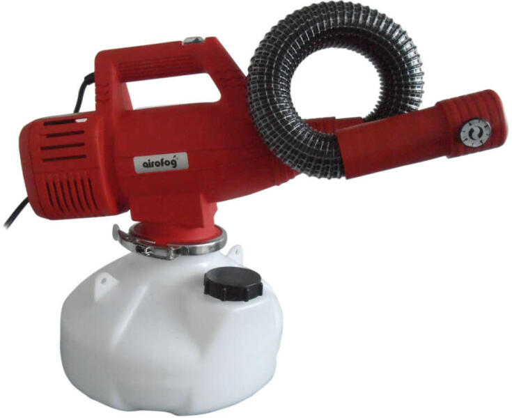 Airofog U260/U120 Hidegködképző: Hatékony permetezés flexibilis csővel ? Ez a nagyteljesítményű hidegködképző ideális rovarirtásra, fertőtlenítésre, szagtalanításra és növényvédelemre. A flexibilis csőnek köszönhetően könnyedén elérhetőek a nehezen hozzáférhető helyek is, anélkül, hogy a készüléket mozgatni kellene. Főbb jellemzők:Erőteljes teljesítmény: Egyenletesen permetezi a finom cseppecskéket a kívánt területre. 5 fokozatú áramlásszabályozás: Pontos folyadékadagolás (50-260 ml/perc) a különböző folyadékokhoz. 4 literes tartály: Kényelmes használat, ritkább feltöltés. Flexibilis cső: Könnyű kezelhetőség és hatékony lefedés. Kis szemcseméret (15-25 mikron): Hosszantartó hatás a levegőben. Tartós anyagok: UV-álló polietilén tartály. Műszaki adatok:Tulajdonság Érték (U260) Érték (U120)Modell U260 U120Feszültség 220-240 V 110-120 VFrekvencia 50/60 Hz 50/60 HzTeljesítmény 800 W 700 WOldattartály űrtartalma 4 liter 5 literSúly (nettó) 3 kg 3 kgSúly (bruttó) 4,1 kg 4,1 kgTartozékok: 50 cm hosszabbító tömlő (szériatartozék) Diffúzor gyűrű (opcionális) Méretek (4 literes): Ø 25 x 39 cm (átmérő x magasság) Méretek (5 literes): 30 x 17,2 x 40 cm (hossz x szélesség x magasság) Csomagolási méret: 36 x 32 x 44 cm