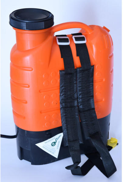 • Akkumulátoros háti permetező. Motoros, kényelmesen és biztonságosan használható.