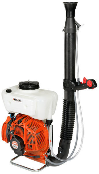 Háti, motoros permetező, hosszú, intenzív munkához. Könnyű kezelhetőség, nagyméretű tartályok, alumínium ventilátor lapát, erős, megbízható motor. Mindenféle növénytípushoz és alkalmazáshoz megfelelően beállítható folyadéksugár.